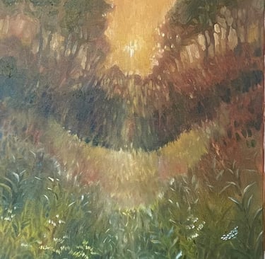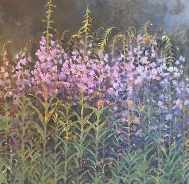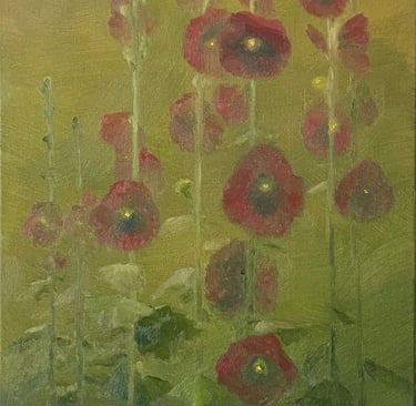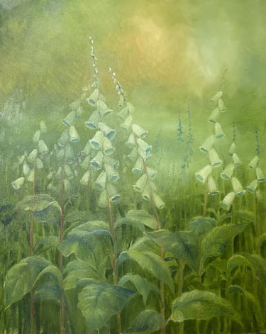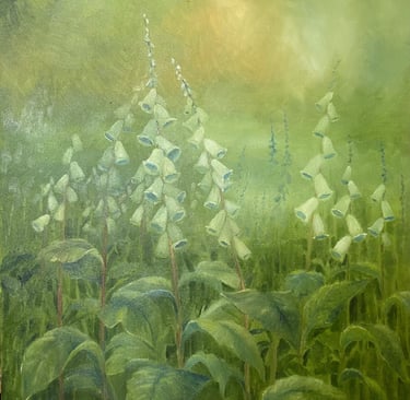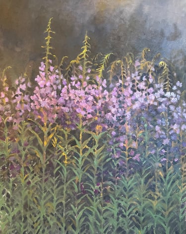 “I create atmospheric oil paintings inspired by flowers, light and landscape, anchored in meditative realism.”