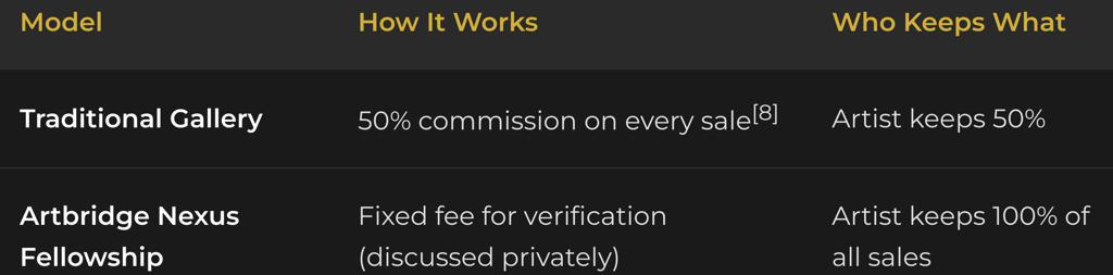Fewer than 2% of artists who submit portfolios are invited to begin the credentialing process.[2] For the other 98%, the Fellowship's pricing is irrelevant—because the opportunity itself is not available.
